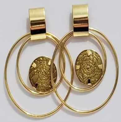 Brinco argolaa dupla e mandalinha de capim dourado