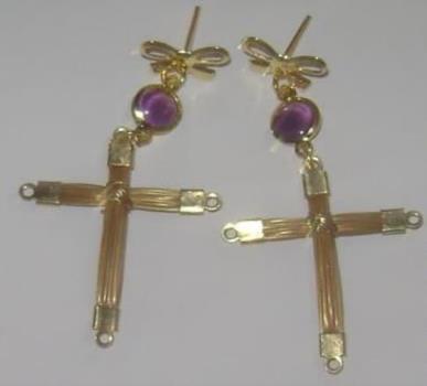 Brinco em capim dourado formato de cruz 5cm COM ESMERALDA ARTIFICIAL
